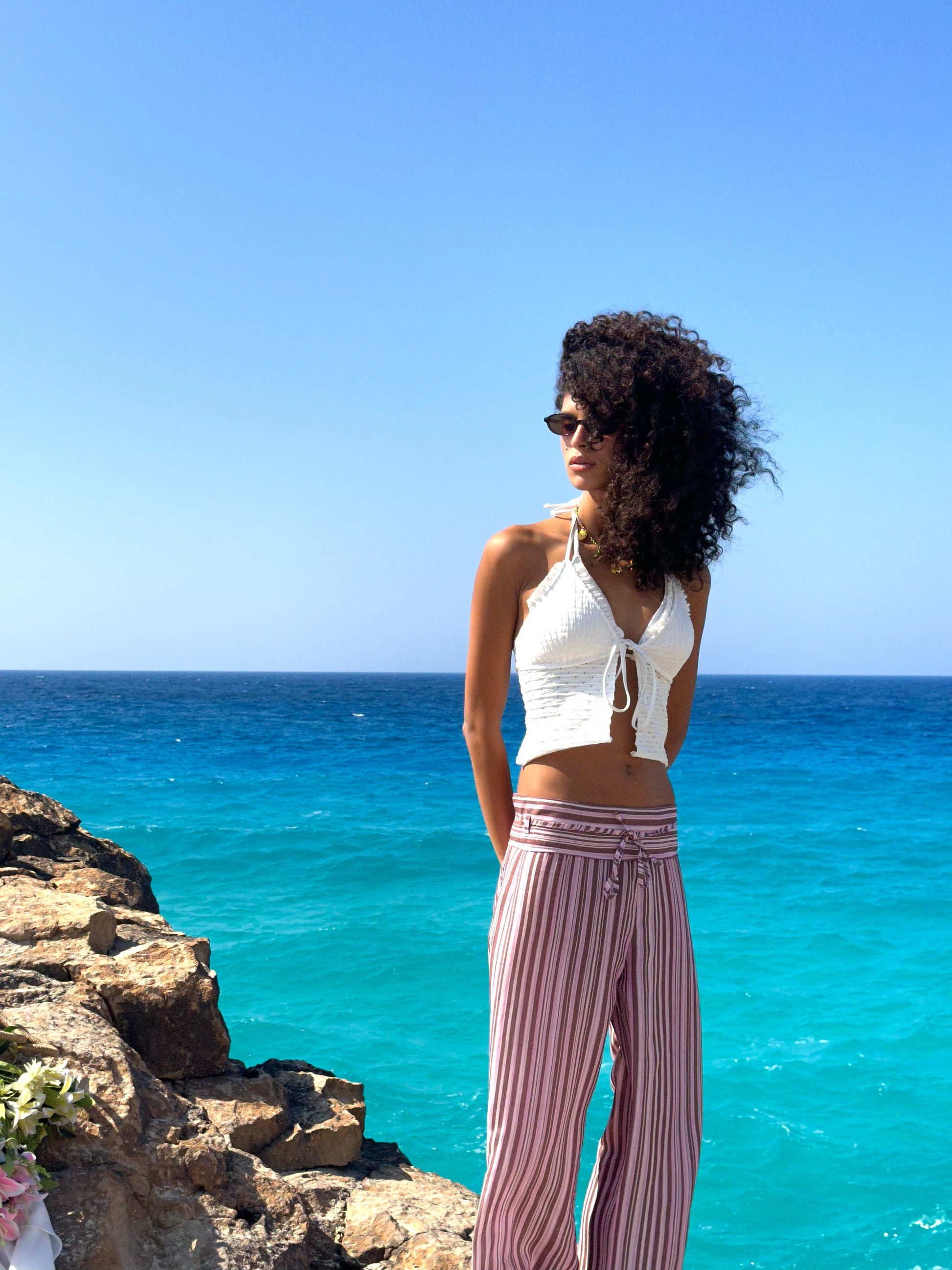 Brunrosa - combines rich brown with soft baby pink shades inspired by gentle sunsets. Lightweight and breathable, ideal for a cozy yet chic look all day long.